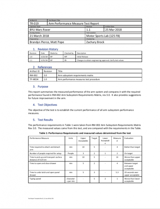 All Capstone artifacts should have an artifact title block. The artifact title block contains an ID, a title, a revision, a date, a creator, and in most cases, a checker. They can also have approval information. In some cases, you may also include license information such as copyright or Creative Commons or some other form. Each written artifact is contained in its own document and/or computer file. This allows easy changes to individual artifacts, without having to change the entire artifact package.
